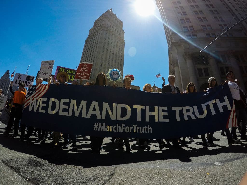 «Serví a la Marina de Estados Unidos durante 22 años para defender la Constitución y no para cubrir los intereses financieros de Donald Trump», manifestó un residente de Virginia. Esto se debe a que en la marcha por la verdad también se pidió por la transparencia en los impuestos que el presidente paga.