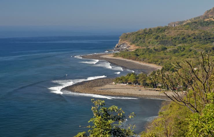 Su costa es muy irregular, encontramos allí las llamadas bocanas, que son pasos estrechos de mar que sirven de entrada a una bahía o fondeadero; de entre ellas se destacan la de Santiago, la de Cordoncillo, la del Río Lempa y la de La Chepona. Otros accidentes geográficos son las puntas de Remedios, de San Juan y el Faro; las bahías de Jiquilisco, de La Unión y el gran Golfo de Fonseca donde 16 islas completan el territorio nacional.
