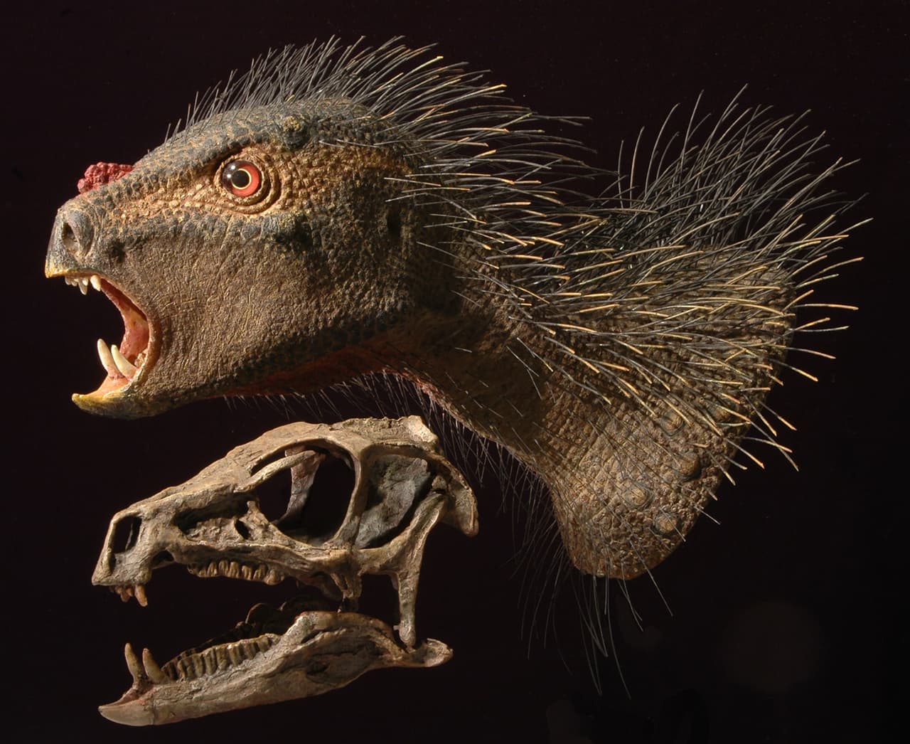 El cráneo del Pegomastax no medía más de 10 centímetros y estaba adaptado para arrancar fruta. Además, tenía dientes escondidos detrás del pico para cortar plantas.