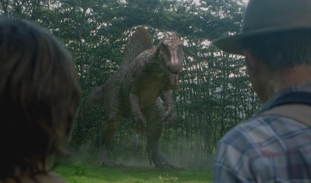 Quizás te estés preguntando cómo es que estamos tan seguros que has visto a este dinosaurio antes… Bueno, si viste la tercera película de Jurassic Park, entonces quizás recuerdes que el dinosaurio principal (y el único motivo por el que esta película valió la pena) era un gigante de hocico alargado, con una gran espina dorsal, dado al nado y capaz de derrotar a un tiranosaurio rex en un «uno contra uno».