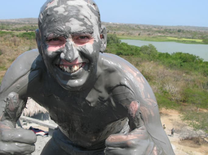 Además de divertido, el lodo tiene una gran cantidad de minerales que favorecen a la piel y el cabello. De hecho, hay gente que te ofrece unos masajes improvisados dentro del cráter por una propina.