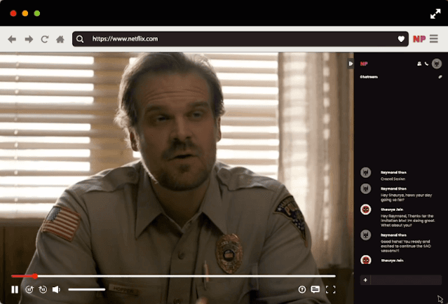 5. Ellos deberán darle clic a la URL, que los redirigirá al sitio web de Netflix. En el momento en el que le den clic a su extensión 'NP', se unirán en automático a la reproducción de la serie o película y el chat grupal aparecerá.