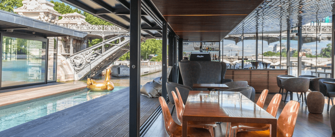 Con un diseño de barco, se considera el bote más grande estacionado en París. Se halla anclado en Gare d’Austerlitz, la estación de trenes. La piscina central es increíble, pues da acceso al Sena (sin conectar directamente con el río). El bar cuenta con asombrosos cócteles y deliciosas tapas europeas. Lo interesante es que este sitio no es exclusivo para huéspedes, por lo que puedes ir a conocerlo sin necesidad de pagar por una habitación.