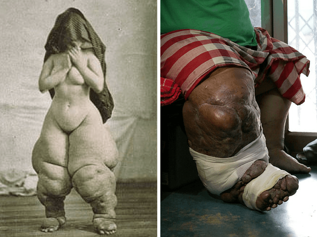 Los tipos más comunes (y los más severos) de Elefantiasis afectan principalmente a las extremidades inferiores y a los genitales externos.