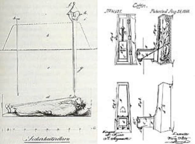 Un diseño que causó admiración en el siglo XIX fue el ataúd contra todo riesgo del Dr. Johann Gottfried Taberger. Tenía un sistema de cuerdas que unía la cabeza y las extremidades del cuerpo supuestamente muerto a una campana situada sobre la tumba. Lo que Taberger no reveló es que, al descomponerse, los cadáveres primero se hinchan y luego van perdiendo volumen, por lo que quizá algunos de sus clientes muertos hicieron algo de ruido en el cementerio.