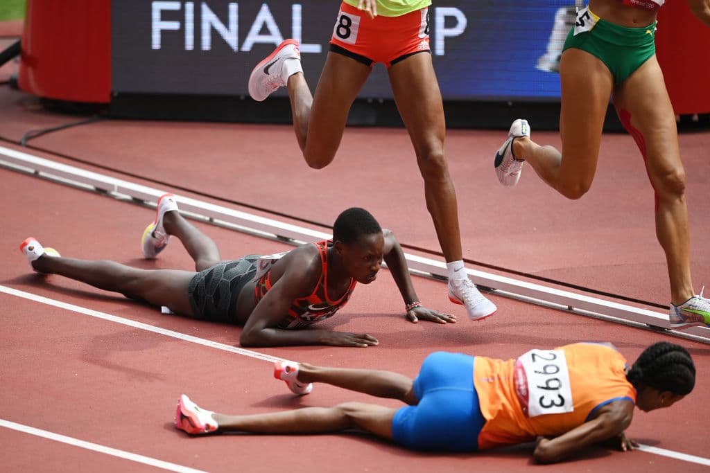 En el último momento de la competencia, se produjo una aparatosa caída por parte de la corredora keniana, así que Hassan no pudo evitar tropezarse con ella.