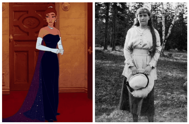 La película de Anastasia retoma una peculiar parte de la historia real: el cuerpo de la princesa no fue encontrado como el del resto de su familia, por lo que los rumores de que estuviera viva sí fueron reales, incluso muchas mujeres declararon ser la única heredera sobreviviente.