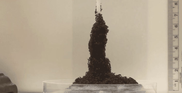 Por otra parte, descubrieron —por accidente, después de dejar las cámaras prendidas cuando no debieron hacerlo— que la torre de las hormigas se iba hundiendo en el centro a medida que iba creciendo, teniendo que ocupar ese espacio las hormigas que estaban más arriba, permitiendo que la torre se mantuviera estable renovando siempre su estructura.