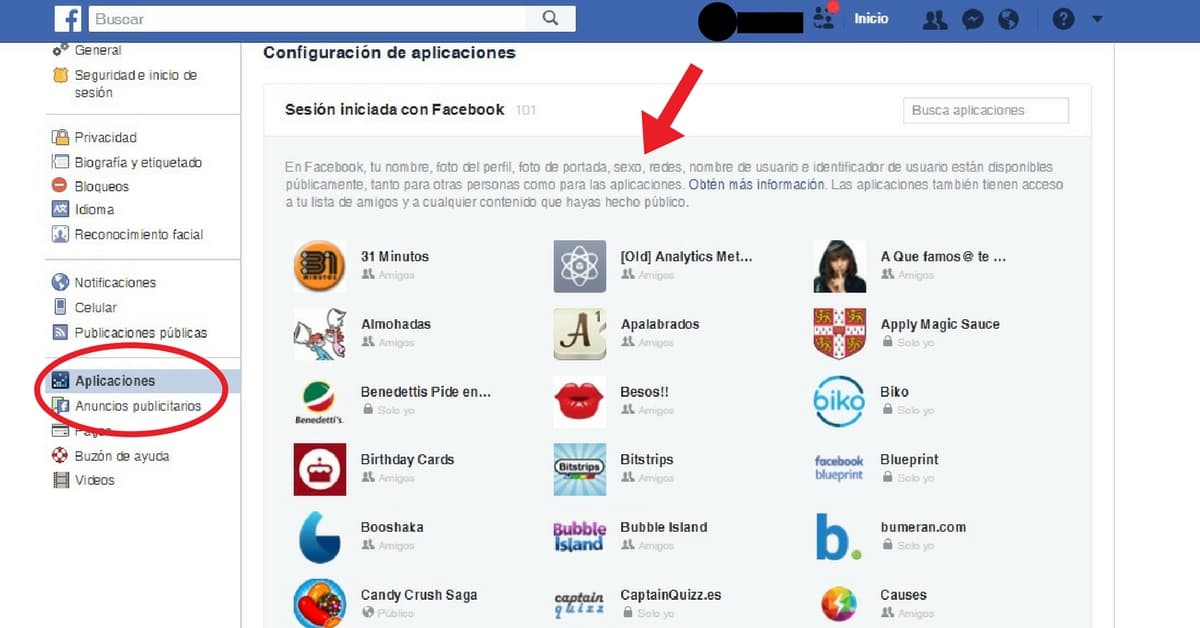 #2 Da clic en 'Aplicaciones' para ver cuáles son las que tienen acceso a tu perfil de Facebook (no se burlen de mis apps)