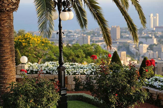 Distribuido en diecinueve terrazas pobladas por palmeras, cipreses y olivos, el Bahà'í Garden de la ciudad de Haifa se eleva progresivamente hacia el Monte Carmelo dejando atrás las bella vistas de esta ciudad situada al norte de Israel, del mar Mediterráneo y de una cúpula dorada, también conocida como el Báb, que simboliza el corazón de una de las religiones más contemporáneas de Oriente.