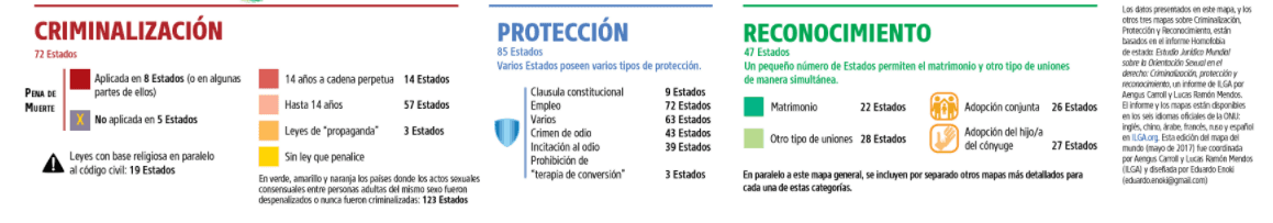 El mapa fue realizado por la Asociación Internacional de lesbianas, gay, bisexuales, trans e intersexuales con la finalidad de exponer la gravedad del asunto de la homofobia en el mundo, puedes ver el mapa a detalle en su página.