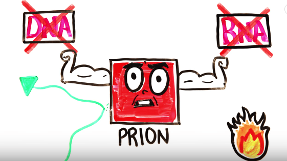 Cuando un prion entra en un organismo sano, convierte otras proteínas sanas en priones, generando una reacción en cadena que altera la salud del individuo generando enfermedades.