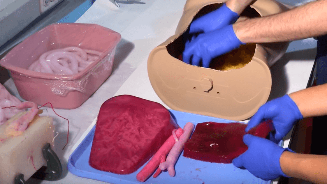 En la Universidad de Rochester, en el proyecto SIMPLE (de Simulated Inanimate Model for a Physical Learning Experience), los investigadores incorporaron un hidrogel para que los órganos 3D sangren cuando son cortados.