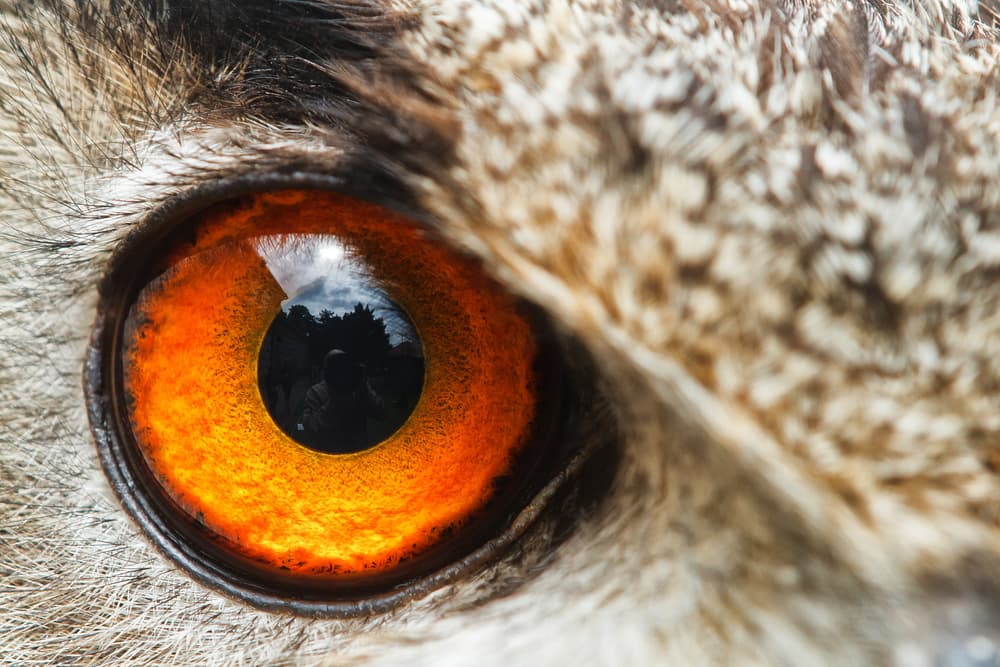 Los búhos tienen una visión binocular y su campo de visión es muy amplio. Incluso sin girar la cabeza puede ver de 70 a 110 grados.