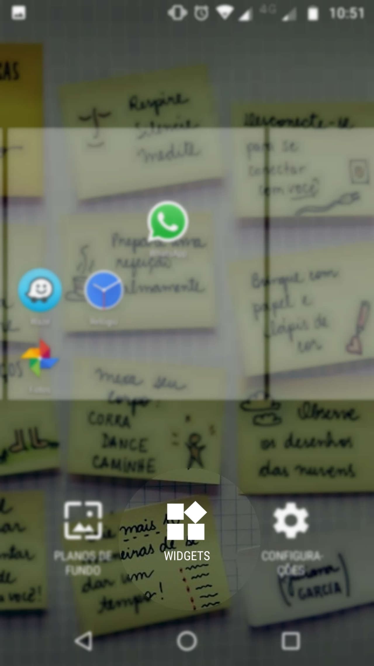 Presiona sobre cualquier espacio vacío en la pantalla del celular por un par de segundos, aparecerá un ícono de nombre «Widgets». Pulsa sobre ese botón: