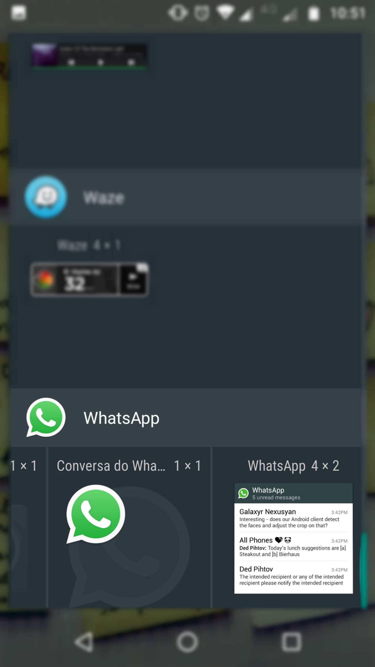 - Se abrirá una nueva ventana con todos los widgets disponibles. Muévete hacia abajo o la derecha hasta encontrar el correspondiente a «WhatsApp 4X2».