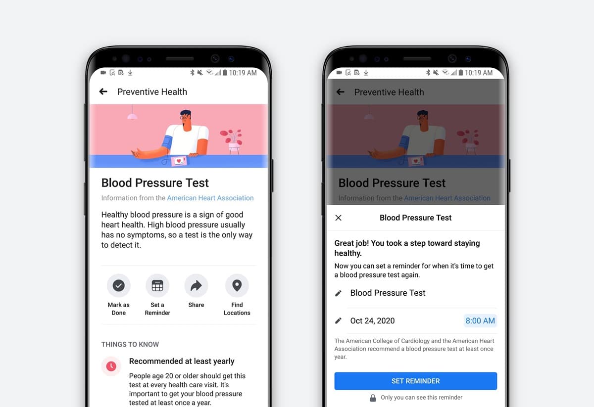 La nueva función, anunciada en el blog oficial de Facebook, es conocida como Preventive Health. Se trata de una herramienta de salud preventiva, que ayuda a las personas a encontrar lugares económicos para recibir atención médica, establecer recordatorios para programar citas o exámenes clínicos, etc.