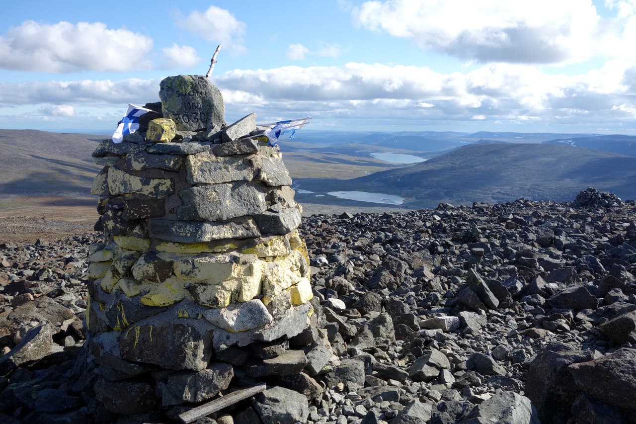 El Monte Halti está en medio de la frontera y parte de él ya se encuentra en terreno finlandés, pero el pico más alto de la montaña está en terreno noruego.