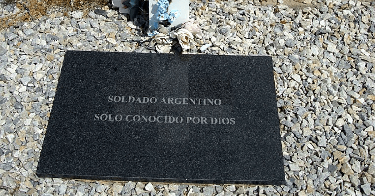 La guerra de Malvinas duró 74 días, donde perdieron la vida 255 soldados ingleses y 649 argentinos, de los cuales 123 estaban enterrados como NN bajo la insignia « Soldado argentino solo conocido por Dios».