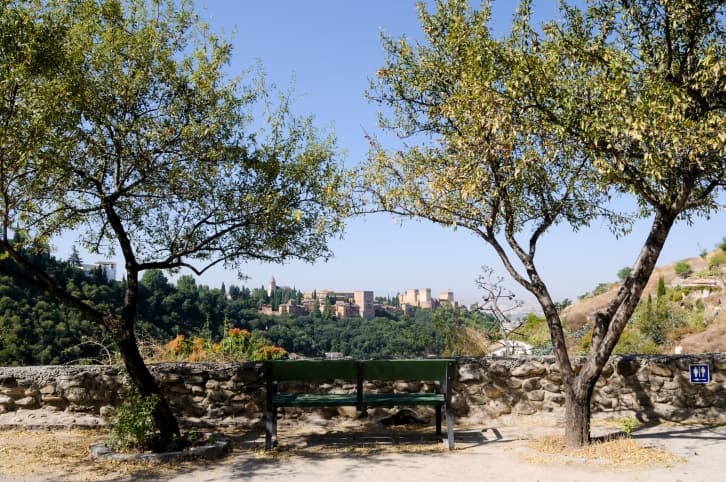 En las puestas de sol hay un instante mágico en el que el cielo de Granada se torna anaranjado y se transforma luego en azul cobalto; las colinas adquieren color lila, pasan a púrpura y finalmente se oscurecen totalmente; mientras, en el horizonte, la nieve de la cima de la Sierra Nevada brilla como si fuera cristal.