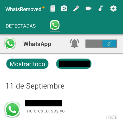 La detección de los mensajes borrados solo ocurrirá si mantienes las notificaciones de WhatsApp activas en el panel. Allí quedará registrado «Este mensaje ha sido borrado», pero en el panel de la aplicación WhatsRemoved, aparecerá el contenido real del mensaje.
