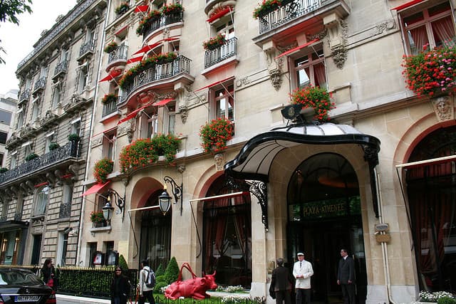 Hotel Plaza Athenee. Tradición, glamour y modernidad se fusionan en las 188 habitaciones – entre ellas, 43 en suite – con vista a la avenida Montaigne, en la zona oeste de la Torre Eiffel. Uno de los fuertes más importantes de este hotes es la comida, preparada por el reconocido chef Alain Ducasse.