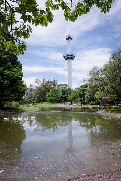 También conocida como la Torre Espacial o simplemente como la torre del Parque de la Ciudad, con sus 200 metros de altura, es la estructura más alta de Argentina y logra una vista que va desde Soldati hasta Uruguay.