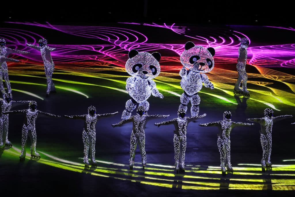 Beijing 2022 tuvo su momento en el escenario con patinadores que dejaron un rastro luminoso junto a pandas gigantes de colores.