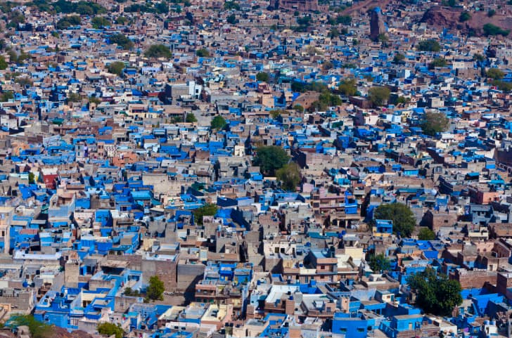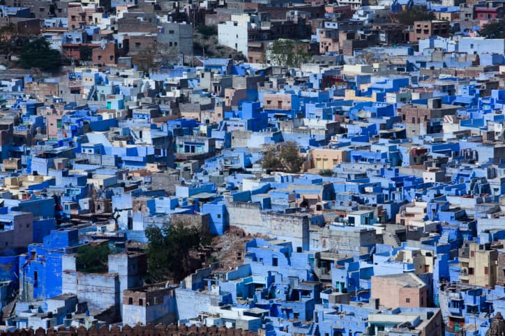 En la ciudad de Jodhpur, ubicada en el estado de Rajastan de la India, no hay espacio para otro color que no sea el azul. Desde sus orígenes, cada construcción de La Ciudad Azul, tal como se la conoce en el mundo, fueron pintadas del color del cielo por iniciativa de los brahmanes, que eran miembros de una casta alta respetable en la India.