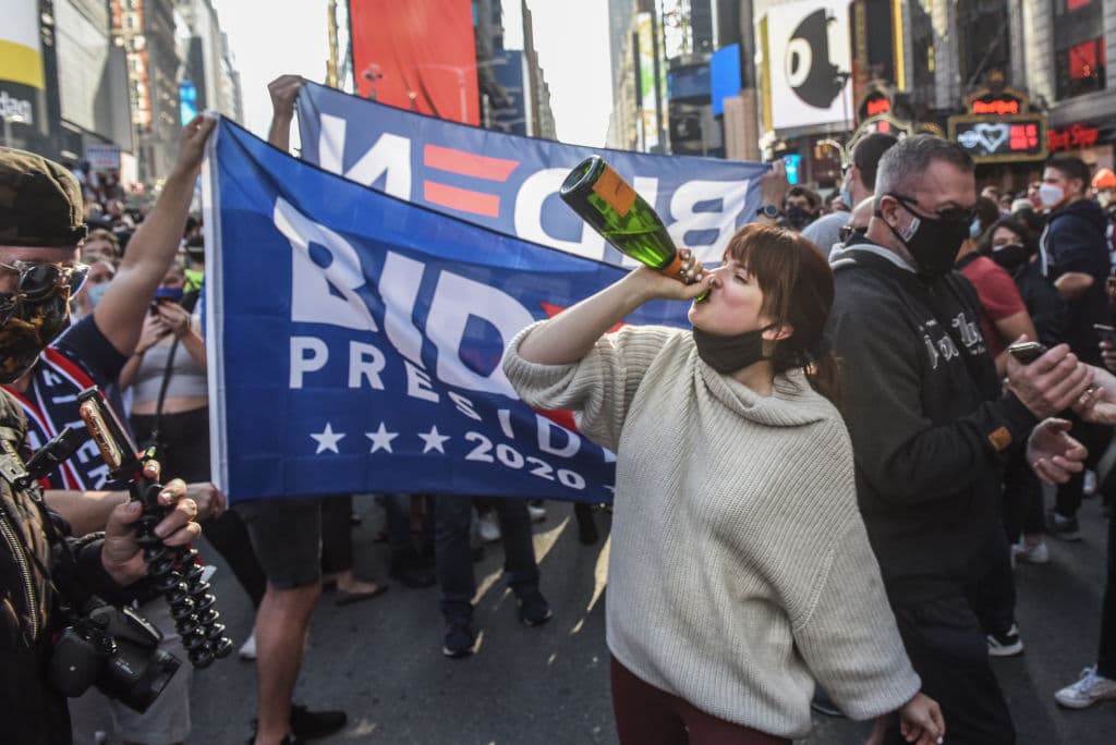 Los festejos por la victoria Biden y Harris han alcanzado y aglomerado las calles a pesar de la contingencia sanitaria. Con las precauciones en regla, así luce el clásico Times Square de Nueva York... tal como una celebración de Año Nuevo.