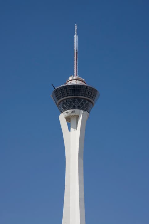 Las habitaciones del hotel que son un total de 2.444 están distribuidas a lo largo de los 20 pisos que conforman la torre. En la parte superior es donde encontrarás el casino de 7 mil metros cuadrados, un restaurante giratorio, para aprovechar el increíble panorama desde esa altura, y las tres atracciones que solo los valientes se animan a probar.