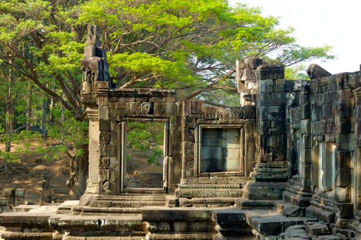 El naturalista francés Henri Mouhot se aventuró en la espesa selva camboyana, en el año 1860, buscando las fabulosas ruinas descriptas diez años antes por un compatriota suyo, el padre Bouillevaux; éstas pertenecían a la ciudad de Angkor, que ocupaba más de cien kilómetros cuadrados con sus templos, santuarios, casas, calles, depósitos, canales de riego y terrazas.