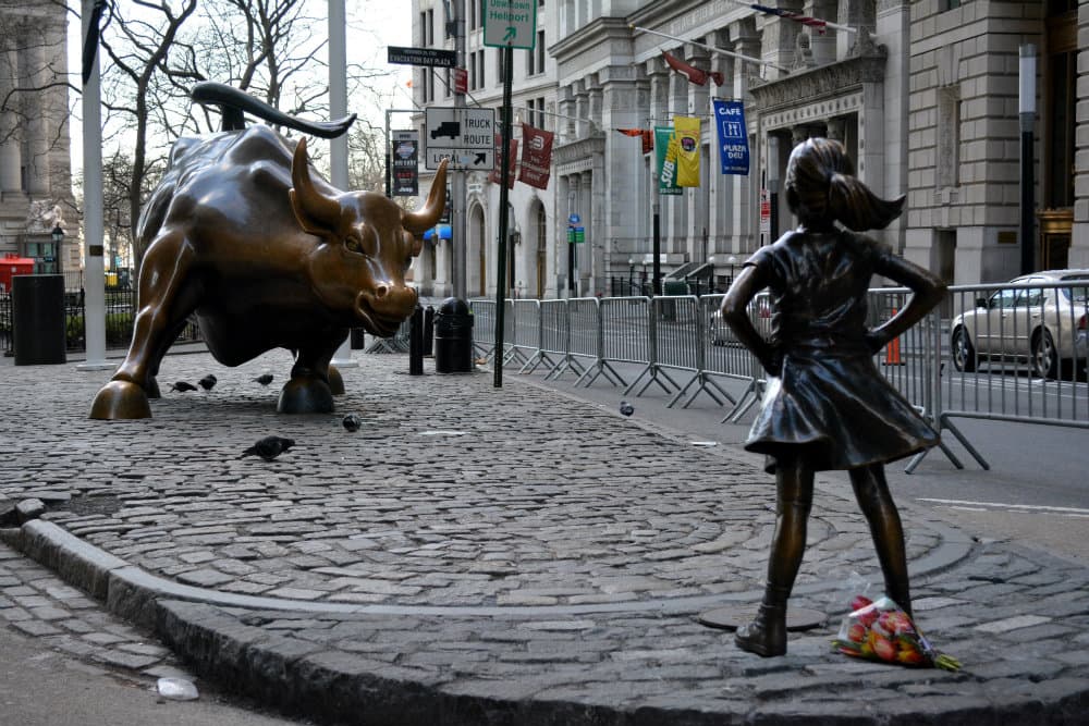 Fearless Girl fue instalada el pasado mes de marzo bajo un permiso temporal justo enfrente del famoso Charging Bull de Wall Street. La impresionante estatua del toro de bronce del artista Arturo Di Modica se erigió dos años después de la estrepitosa caída de la bolsa de valores de Wall Street en 1987.