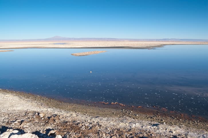 Un último esfuerzo y llegarás a destino. Esta laguna tiene las mismas características que el Mar Muerto. Por su elevado contenido de sales (recuerda que estás muy cerca de un salar), es imposible sumergirse en las aguas de esta laguna. Es casi imposible también, demostrar que esto es así, ya que en un día frío no te dará ganas de hacer la prueba. Pero recuerda, hasta llegar aquí habrás pedaleado unos cuantos kilómetros, así que algo debes hacer: ¡al menos pon los pies en remojo!