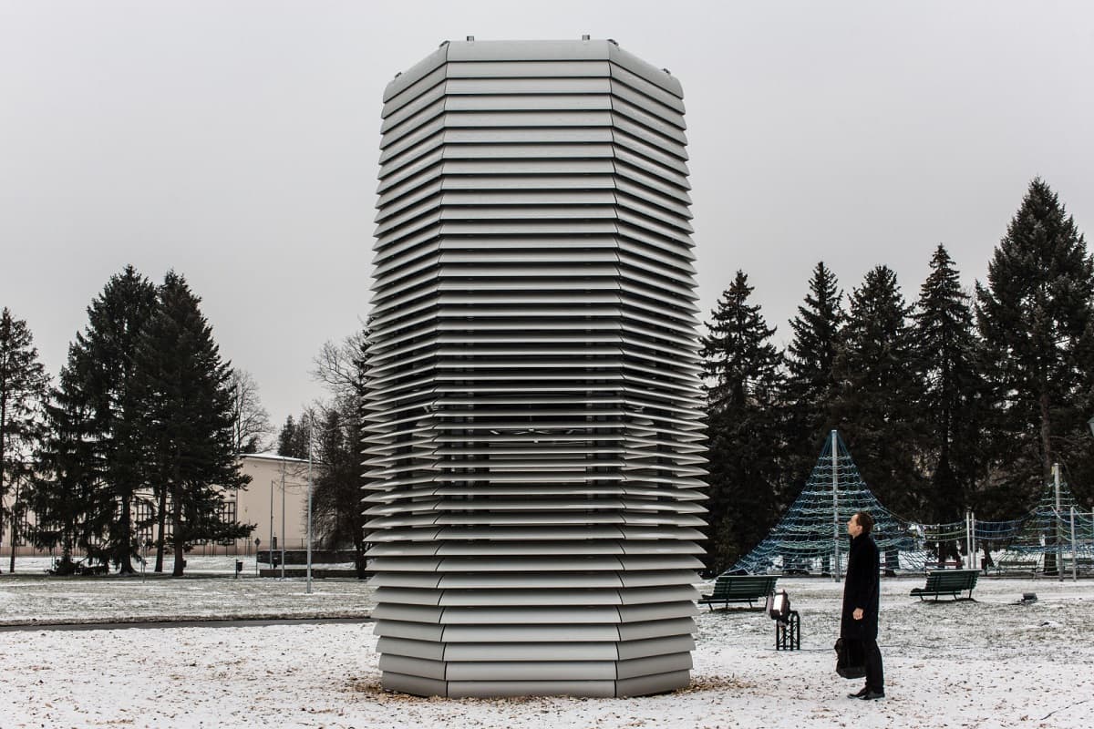 Smog Free Tower es la primera aspiradora de smog en el mundo. Con 7 metros de altura, es una torre que utiliza tecnología patentada de ionización positiva para producir aire limpio en espacios públicos. Esto permite a las personas respirar aire de calidad de forma gratuita.