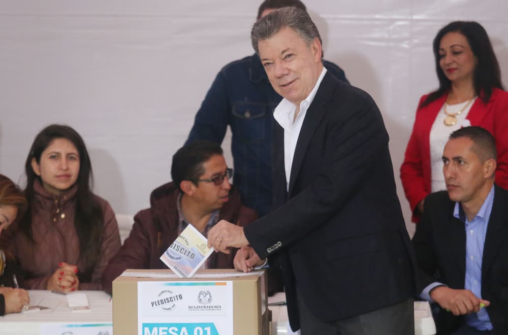 El presidente colombiano, Juan Manuel Santos, mientras votaba ayer en el plebiscito