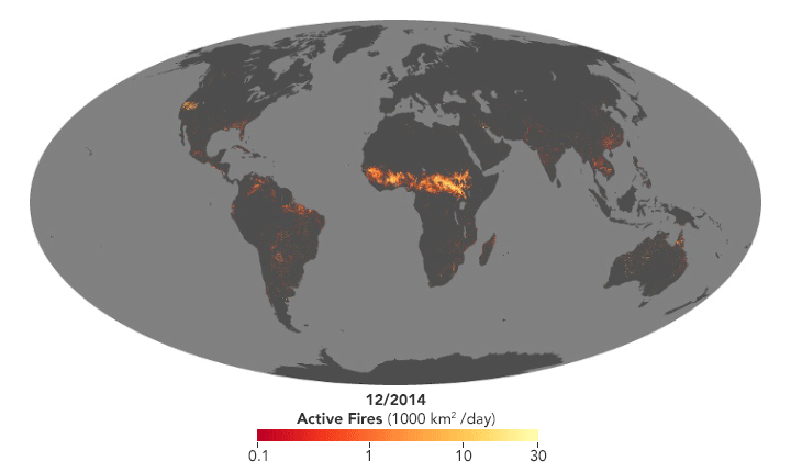 El Observatorio de la Tierra de la NASA también lleva un registro sobre la cantidad de incendios que se presentan en el mundo y cómo con el paso del tiempo se han vuelto más abundantes.