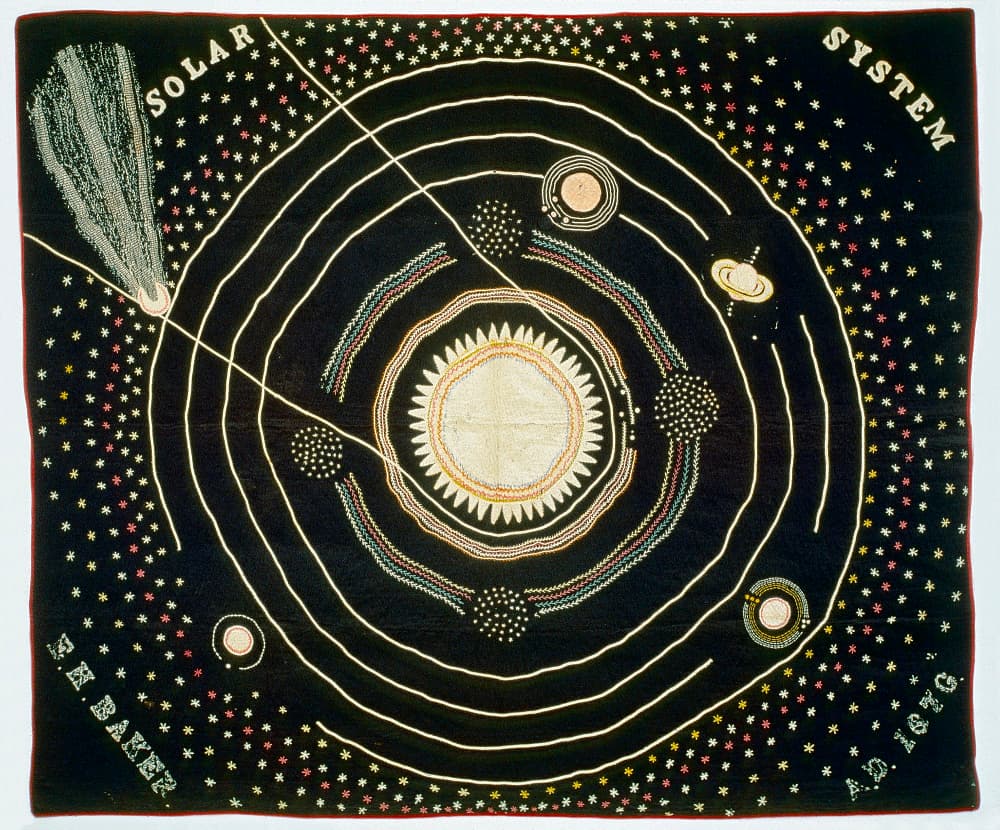 La colcha es bastante grande, de 225 centímetros por 269 centímetros, lo que explica el largo tiempo que precisó para terminarla, aunque el período de siete años es más un rumor que algo confirmado. Ojalá algún día el Smithsonian decida hacer una exposición, para que podamos ver este instrumento de enseñanza tan particular, que ayudó a muchos niños a entender mejor nuestro Sistema Solar.