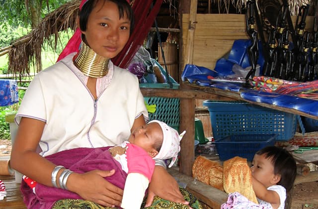 En la tribu Kayan, Tailandia, las mujeres se colocan aros en el cuello para alargarlo cada vez más. Este tipo de apariencia es considerada bella y elegante, algo que muchos no logran entender.