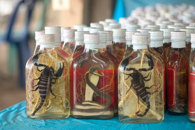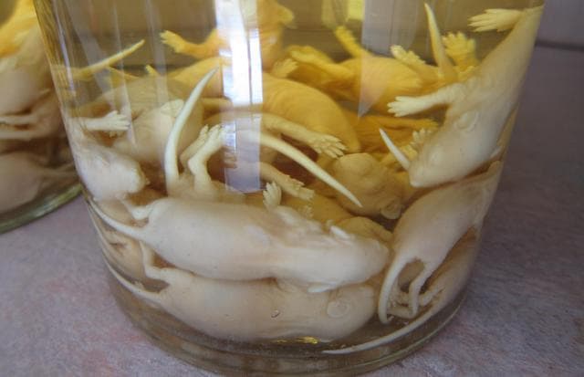 Esto quizás no debería sorprendernos tanto, sabemos que en China acostumbran comer cosas que la mayoría consideraría tabú, como perros, gatos, grillos… y ¿qué utilizan como bebida? Vino de bebé ratón. Asqueroso y extraño, sin duda alguna. Para fabricar esta ultra exótica bebida ponen toda una familia de crías de ratón en vino durante un año. Aunque no lo creas, esta bebida se considera un tónico para la salud pues, supuestamente, alivia problemas de hígado, de piel e incluso asma.