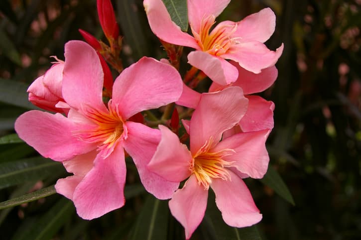 Sus hermosas flores rosas o blancas son un engaño, toda la planta es peligrosa por los cardenólidos, un tipo de esteroide, que contiene.