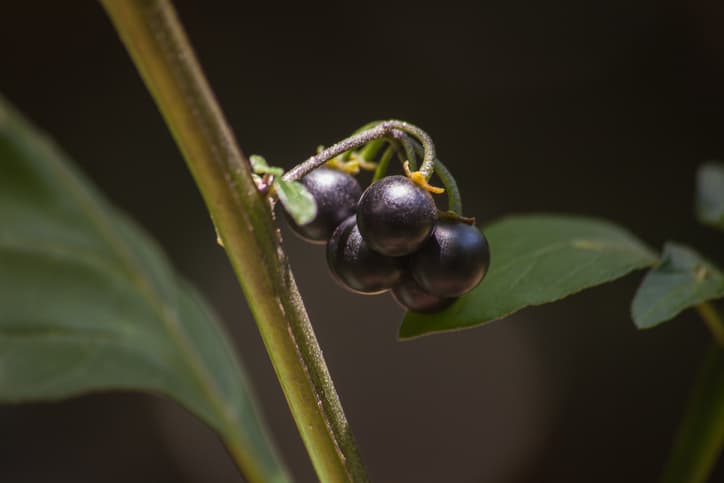 Tiene muchas toxinas, como la atropina, y varios psicoactivos. Toda la planta es peligrosa, pero principalmente sus frutos morados.