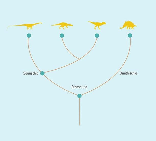 Por ejemplo, un Triceratops o un Cuello Largo no son iguales a un Tiranosaurio Rex o a un Velociraptor, pero su árbol genealógico los conduce a un ancestro en común para ser nombrados dinosaurios.