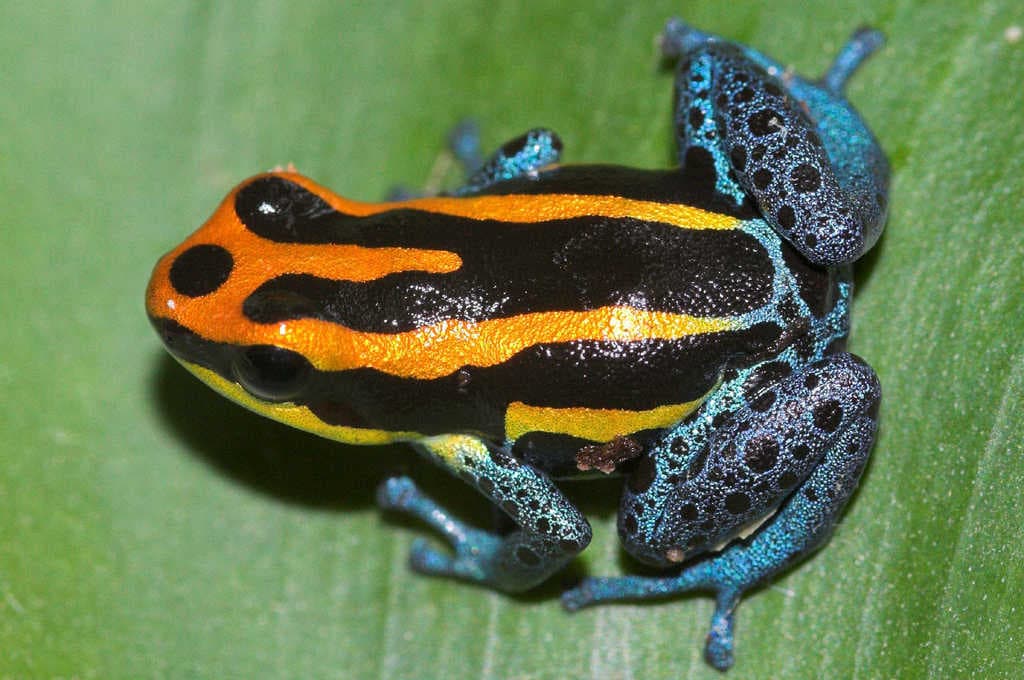 Algunas ranas venenosas de Sudamérica, como Epipedobates tricolor, ponen sus huevos en la superficie de las hojas, donde el macho los custodia celosamente. Cuando nacen los renacuajos, estos están programados para subirse a la espalda de su padre, que los traslada hasta pequeños charcos donde son liberados sin más cuidados paternales.