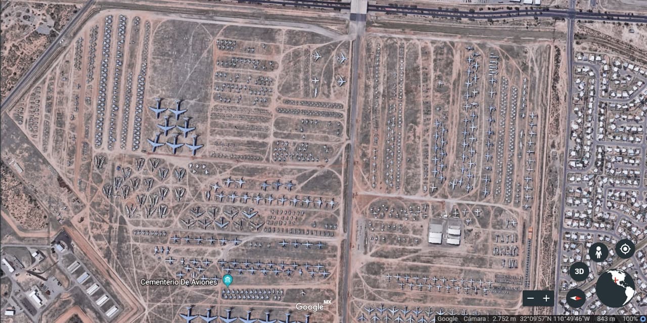 Lo que ves a continuación es un gigante cementerio de aviones. Está ubicado en Tucson, Arizona, en el desierto de Mojave. Es el más grande del mundo y ahí se encuentran más de 4000 aeronaves de las fuerzas armadas de Estados Unidos.