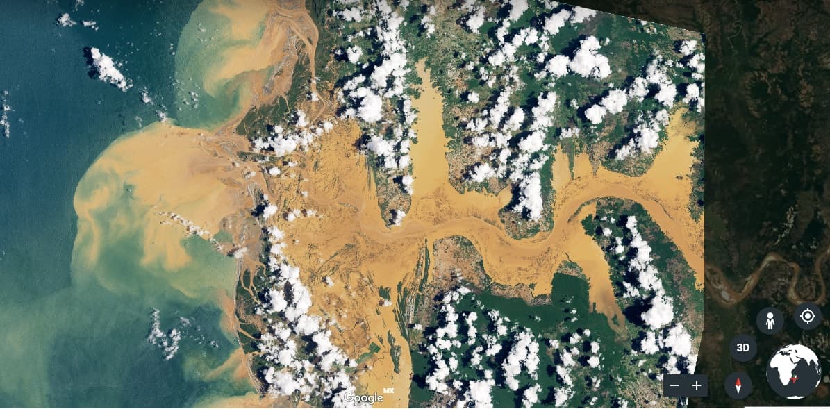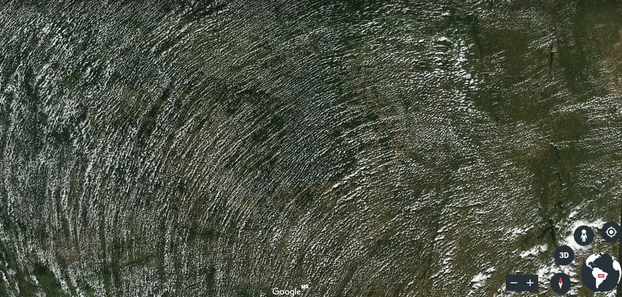 Esta imagen tiene mucha ciencia detrás. Ese efecto que se puede observar son nubes tomadas desde el espacio, cortesía de Nasa Earth.