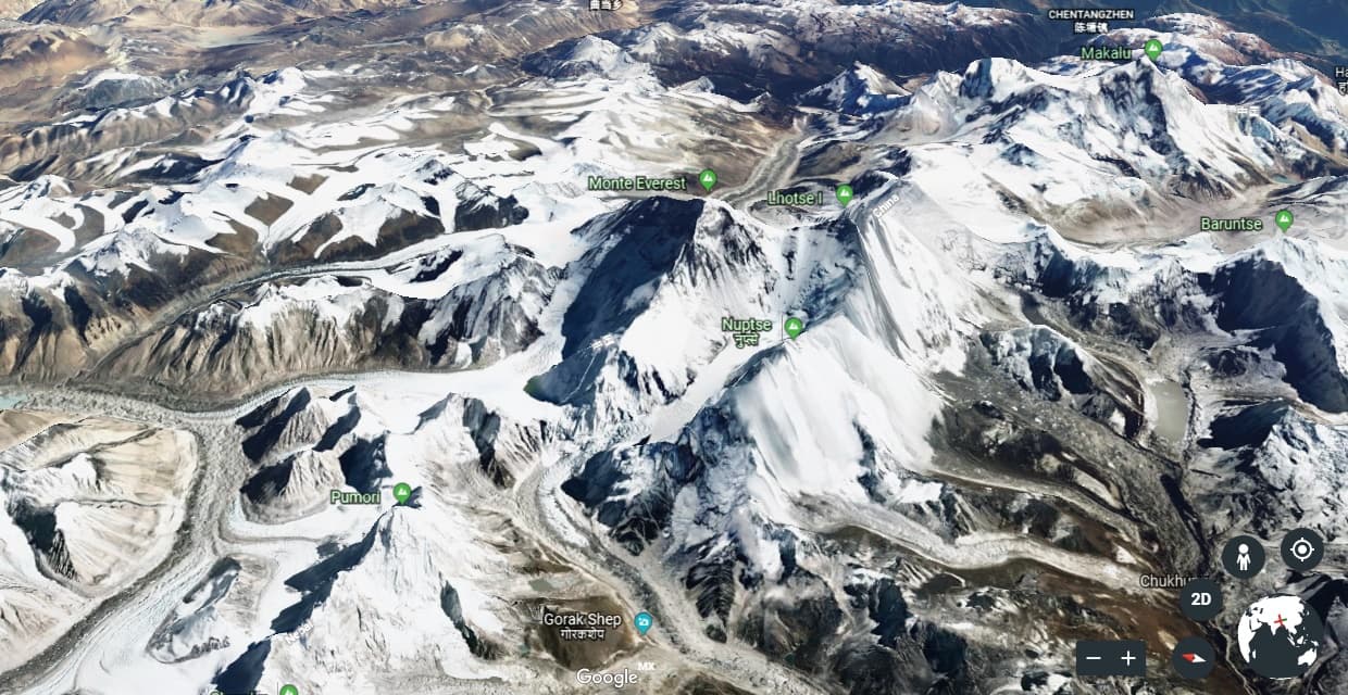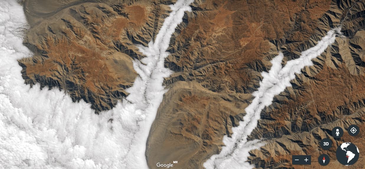 Google Eearth es la herramienta perfecta para maravillarte con la majestuosidad de la naturaleza. Este escenario pertenece al Parque Nacional Los Glaciares, ubicado al suroeste de Argentina.