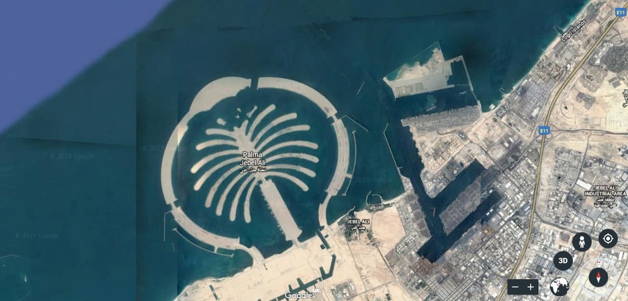 Este recinto, que pareciera tener la forma de un alacrán, son en realidad las Islas Palm. Son artificiales y se encuentran aún en construcción en los Emiratos Arabes Unidos.