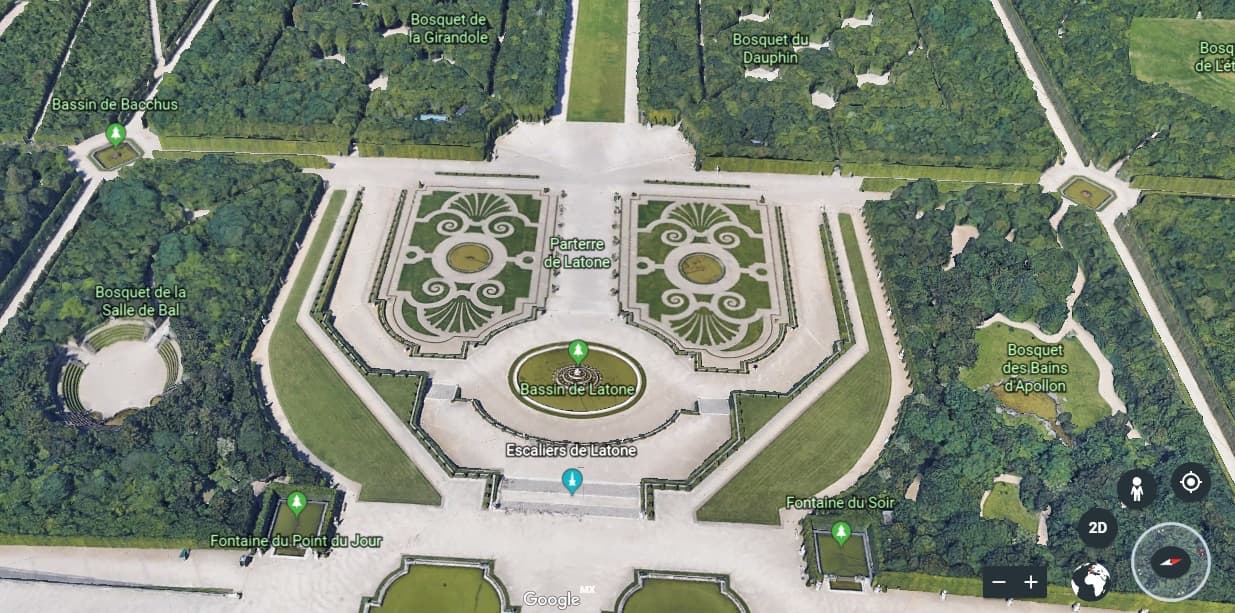 Esta figura está ubicada en los parques del Palacio de Versalles. Para muchos, es una cara sonriente. Y para otros, simula a un perro french poodle.