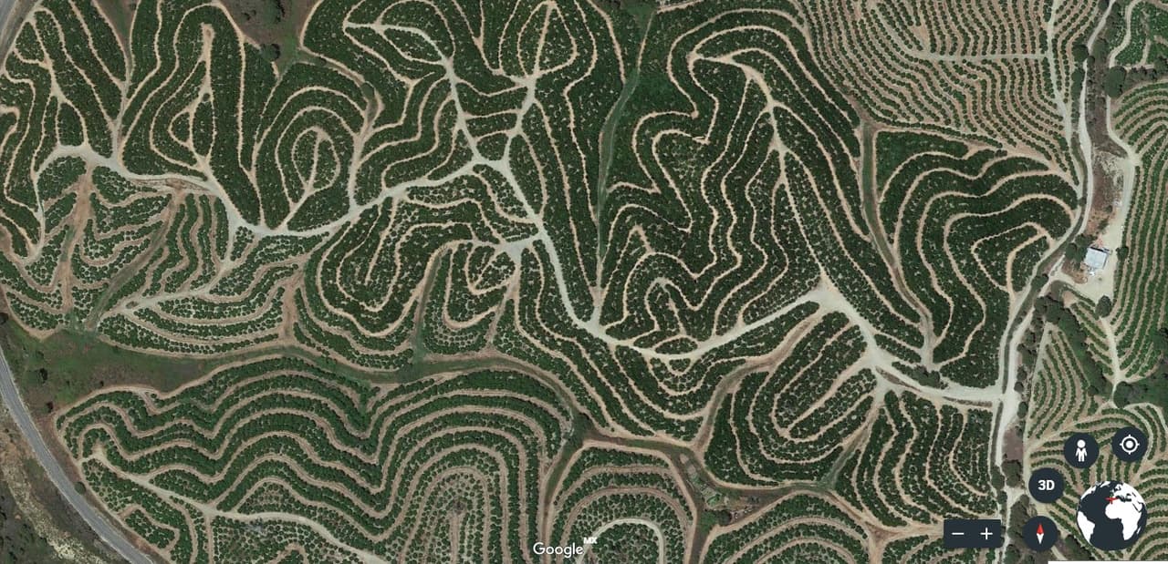 Este curioso paisaje es gracias a una serie de plantaciones ubicadas en Andalucía, España. Este efecto se debe en realidad a las cosechas de diversos alimentos.